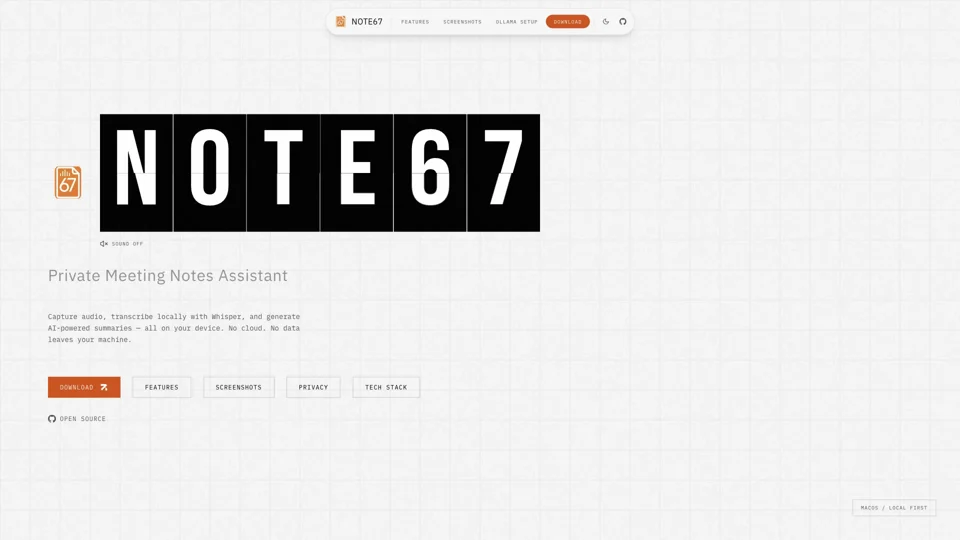 Capture audio, transcribe locally with Whisper, and generate AI-powered summaries. All on your device. No cloud. No data leaves your machine.